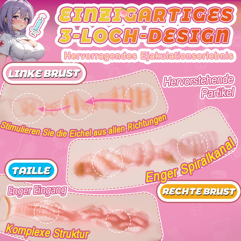 Drei klatschnasse Tunnel - gleite zwischen ihren massiven Titten hindurch oder tauche direkt in jeden saftigen Eingang ein. Keine Gnade, nur Vergnügen.